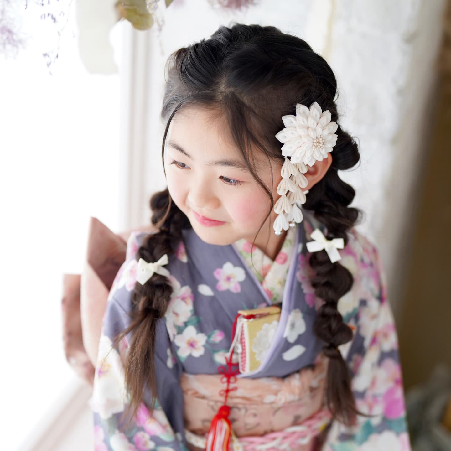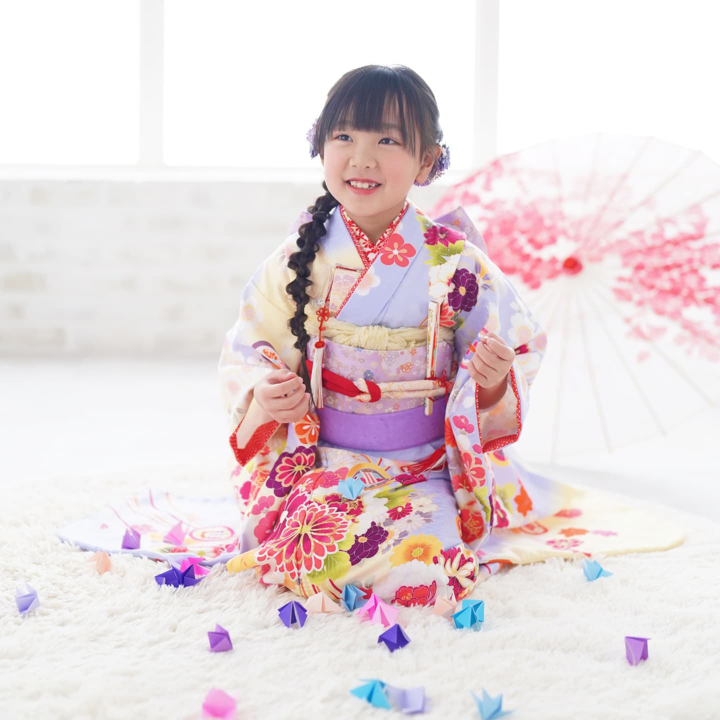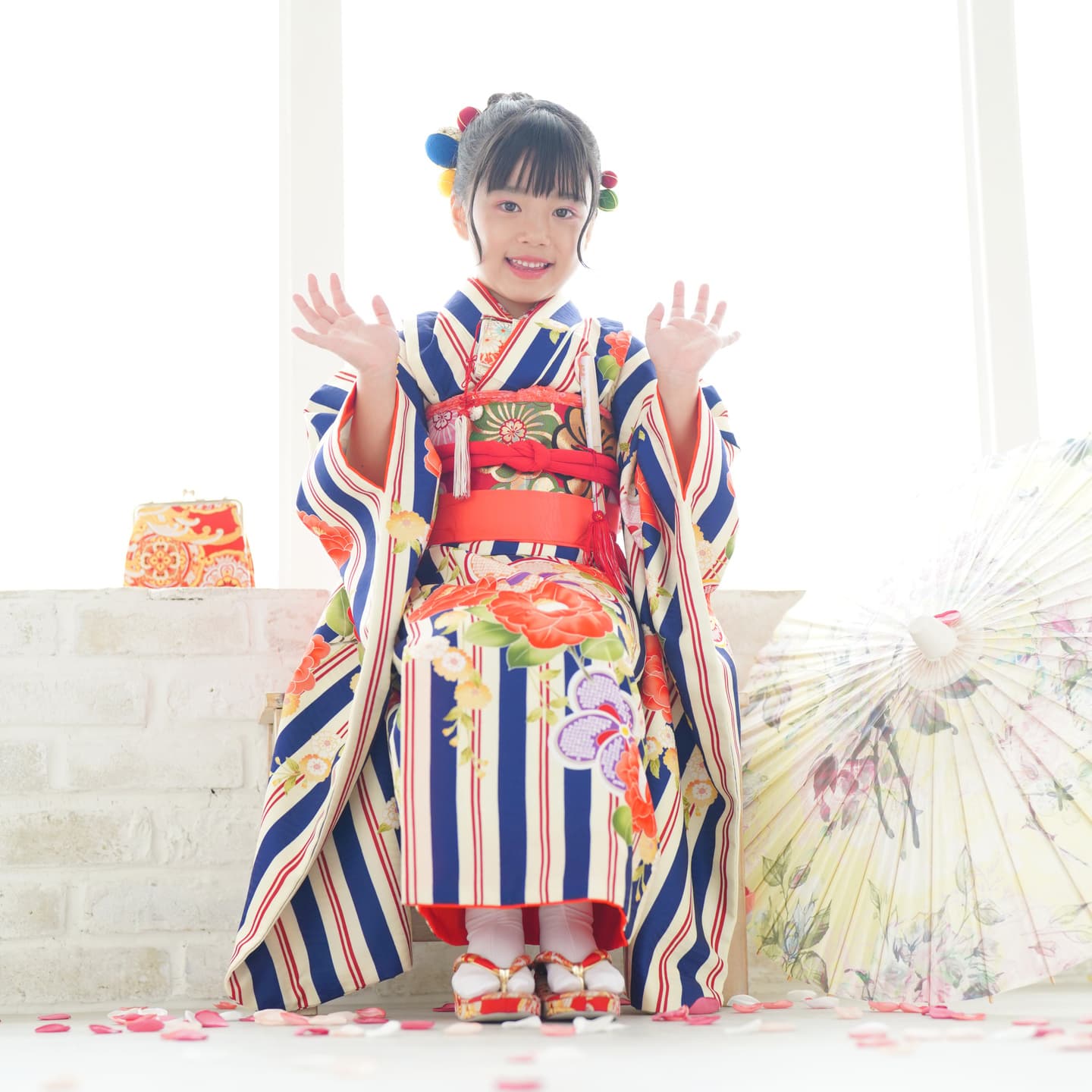 着物1着、着付ヘアセット、主役のお子様お1人での多ポーズ撮影が含まれています