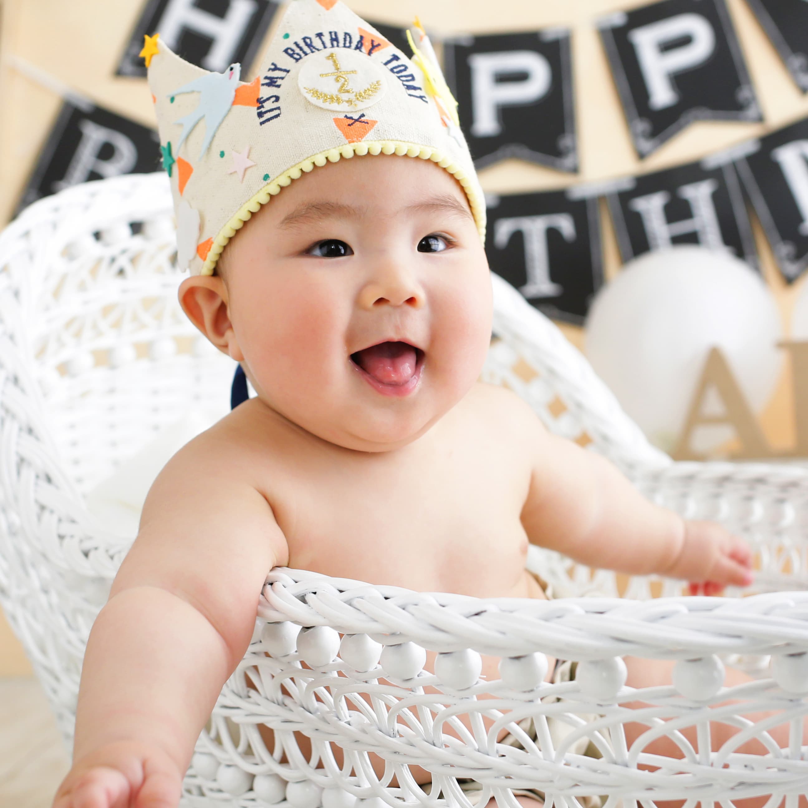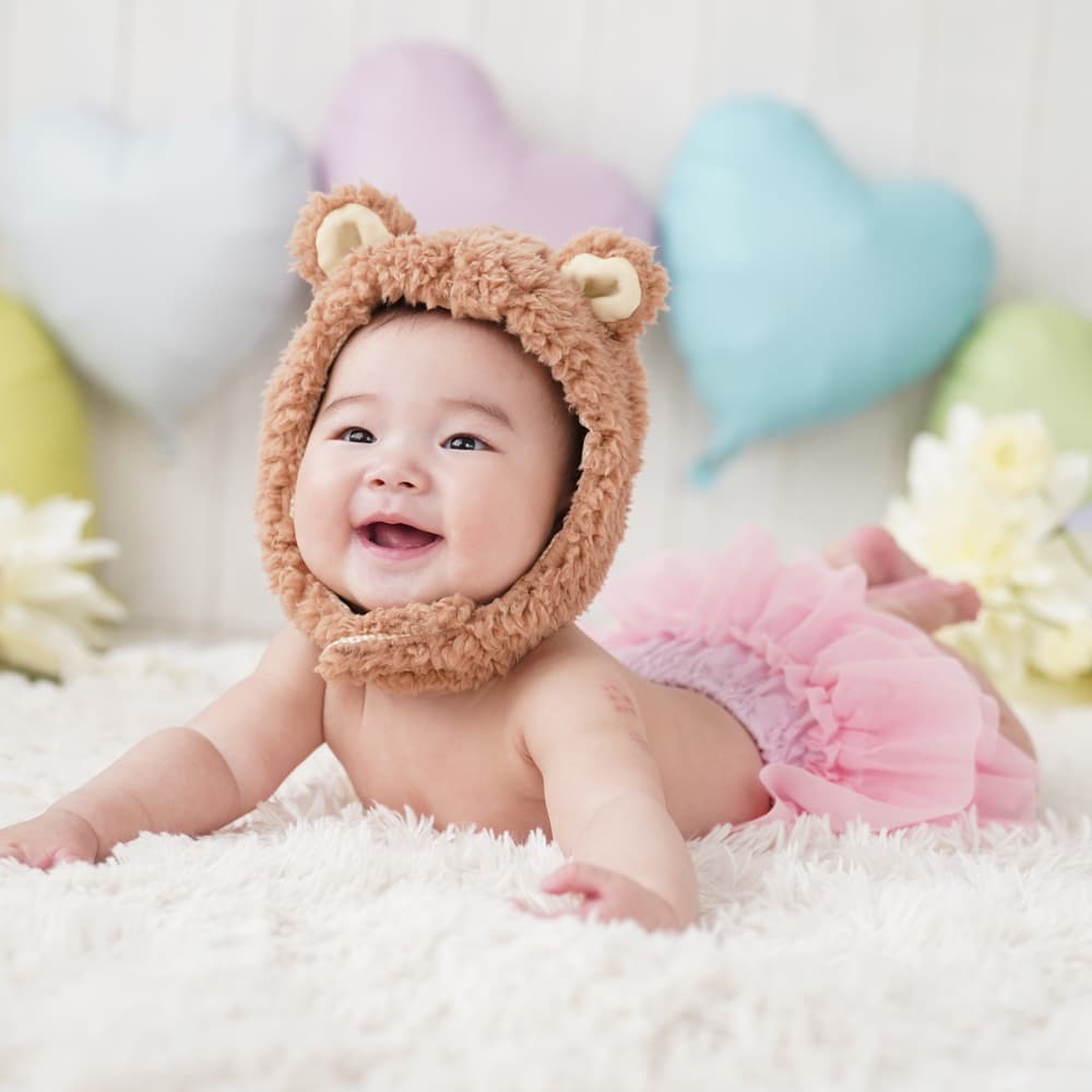 1歳お誕生日の撮影は、ぼうしやヘアバンドをいやがるお子様が増えます!ハーフバースデーの撮影で可愛く撮っちゃいましょう!