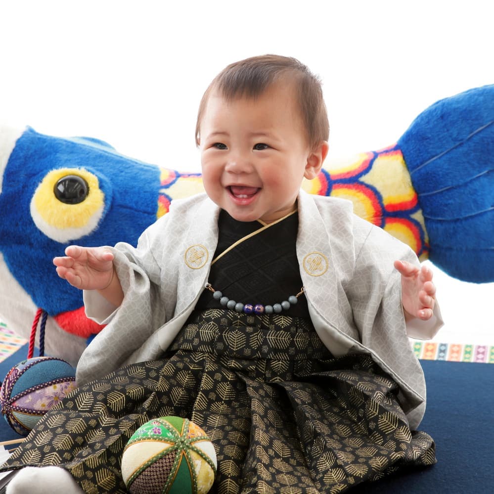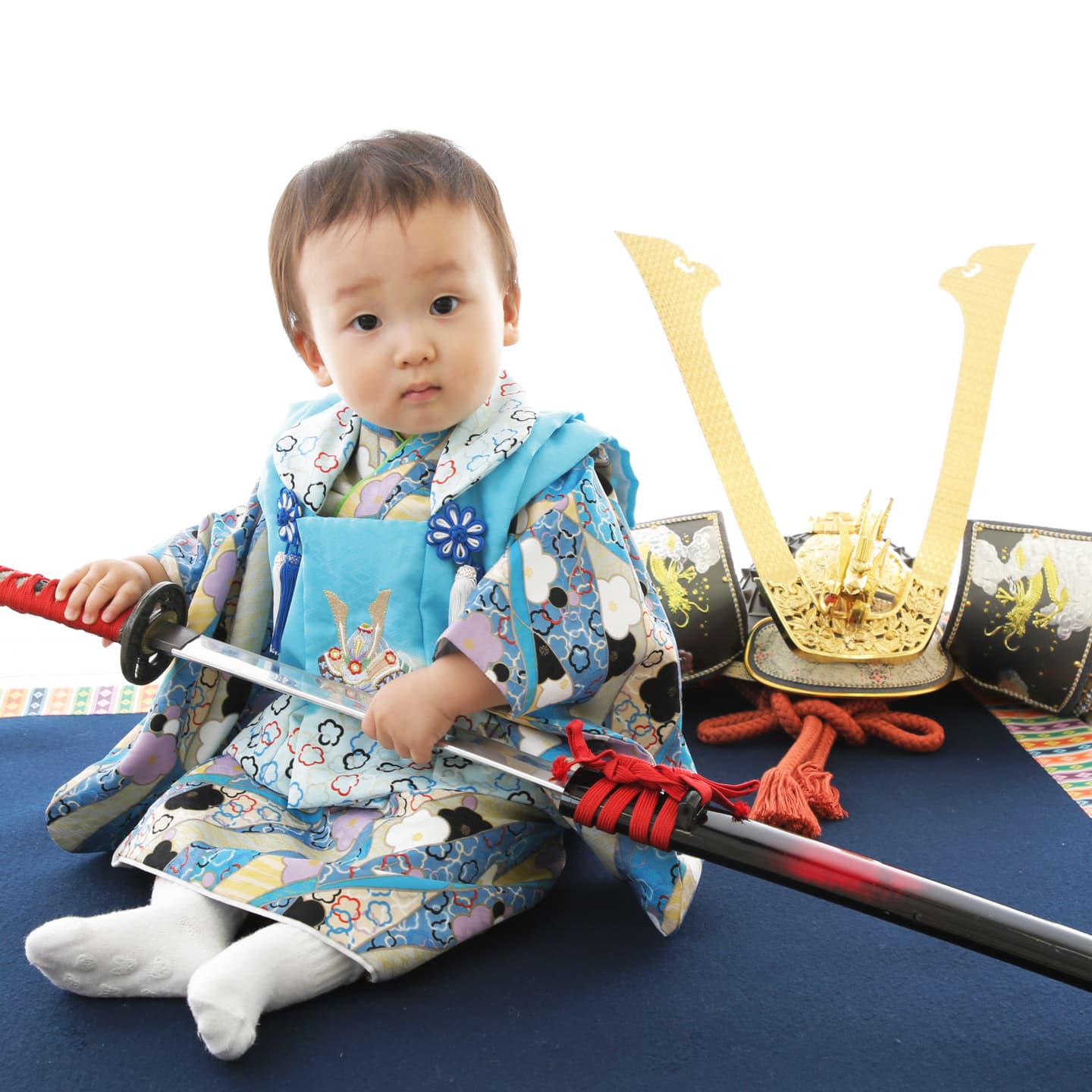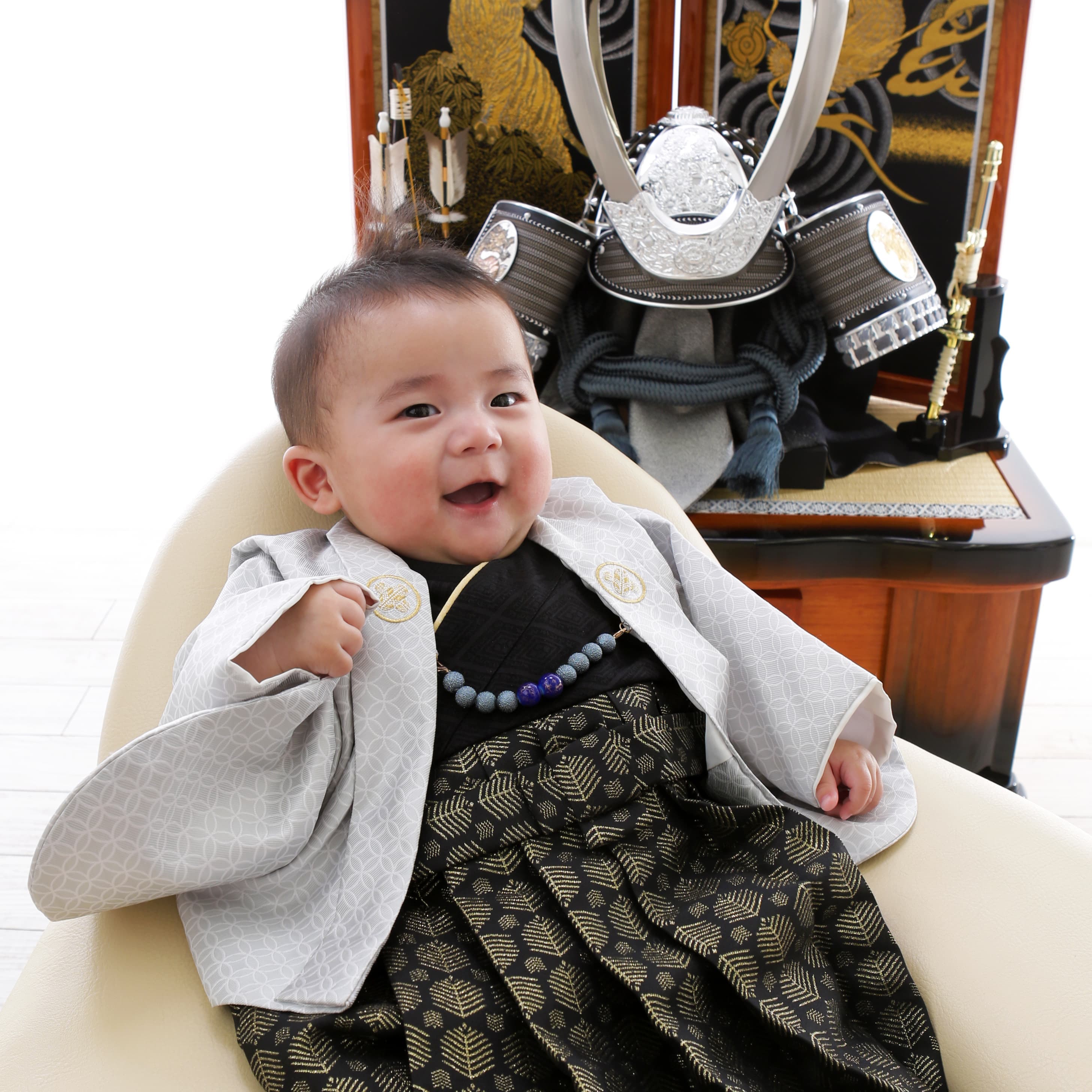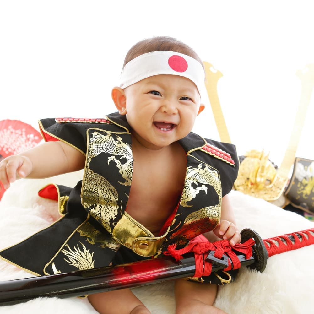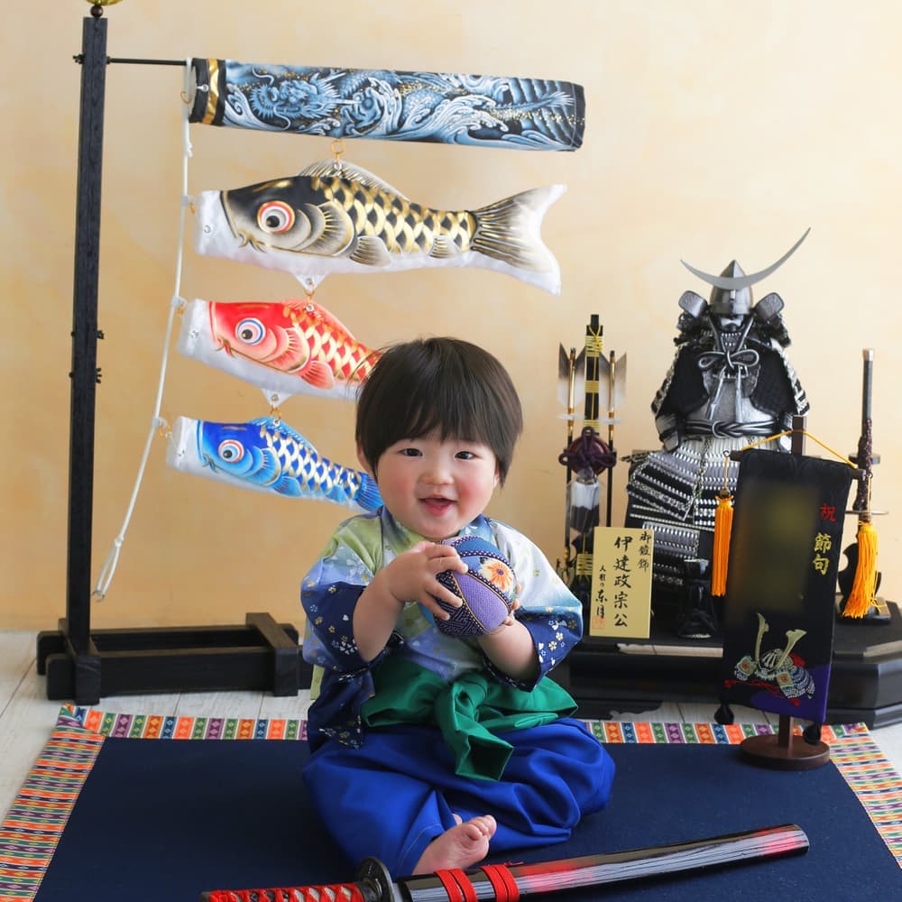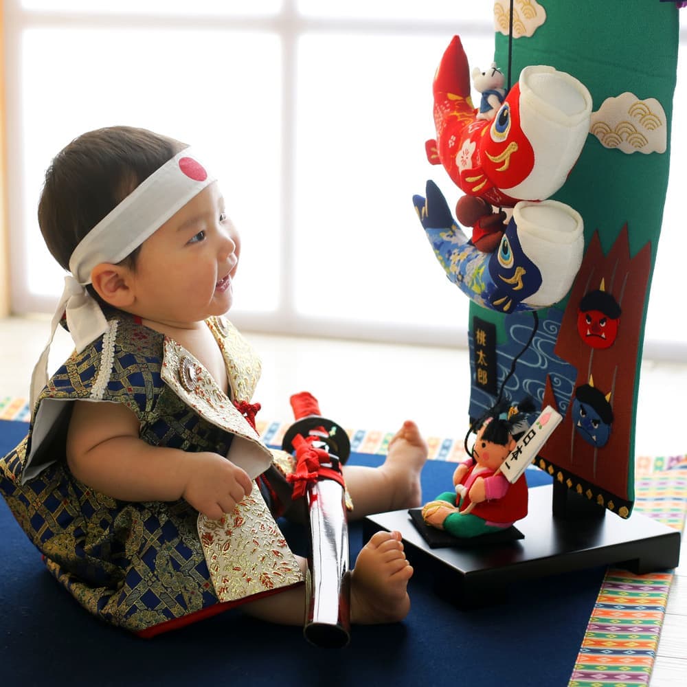 手足が自由に動かせるから、赤ちゃんもゴキゲンで撮影!兜飾りやお名前の旗などのお持込みOKです