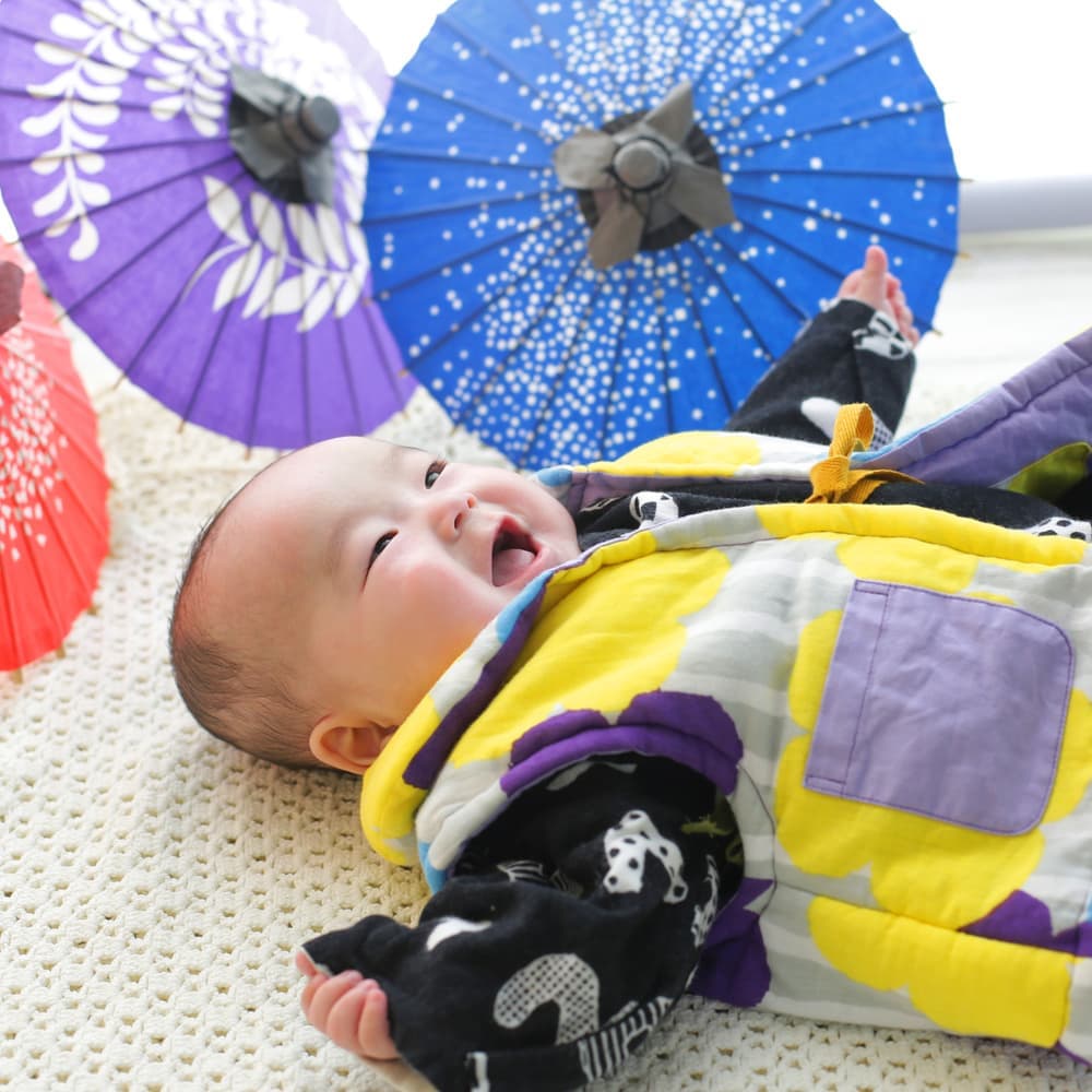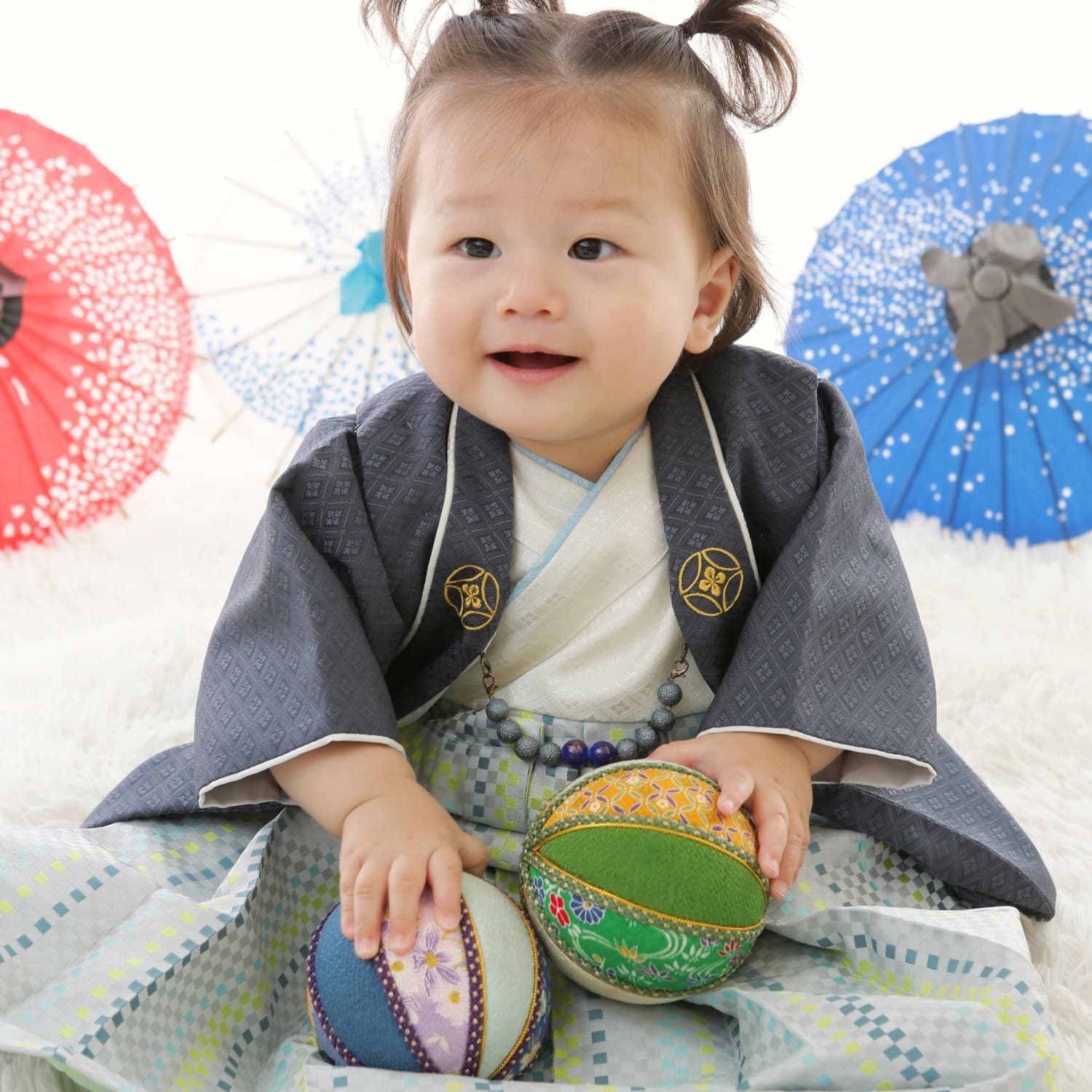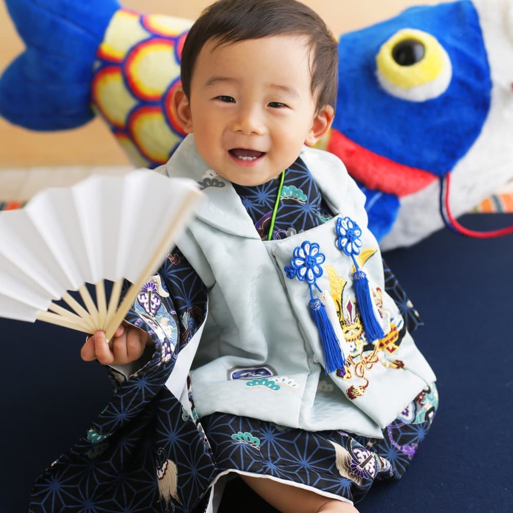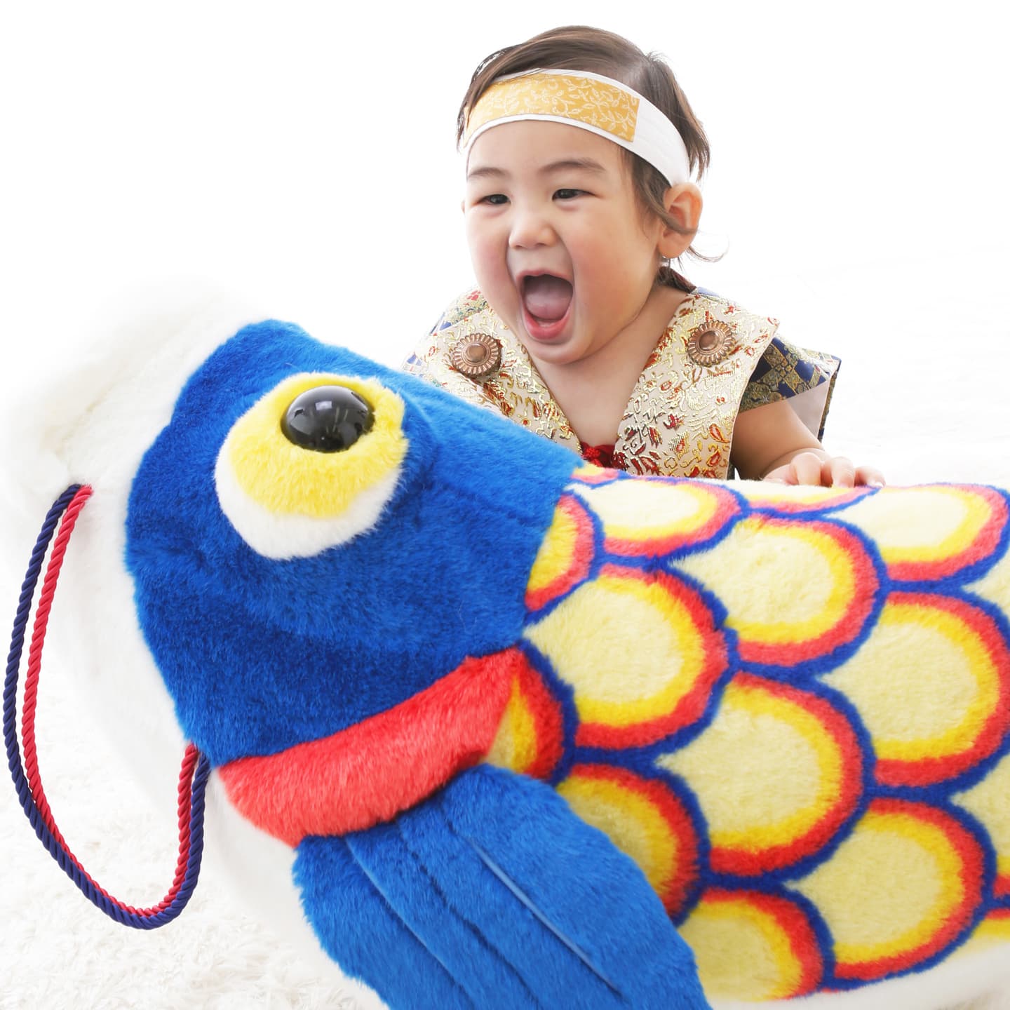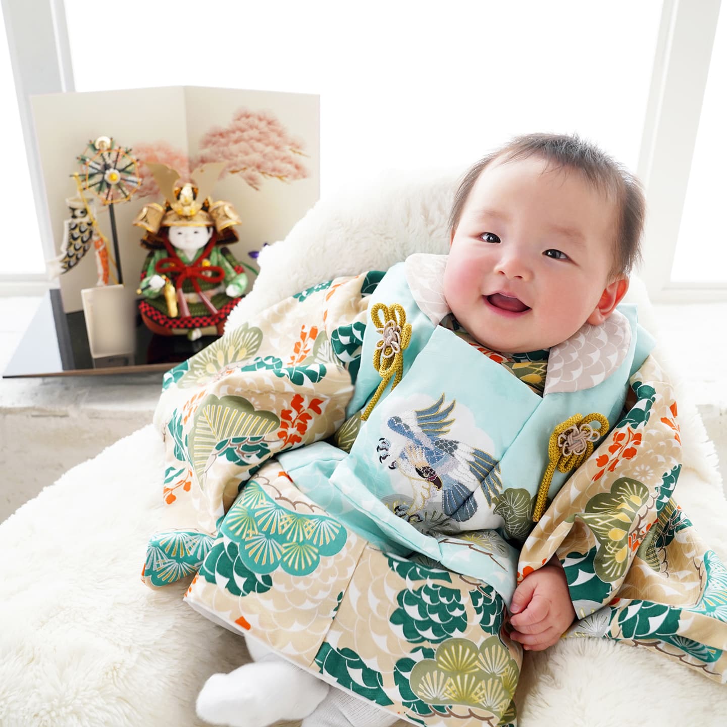 手足が自由に動かせるから、赤ちゃんもゴキゲンで撮影!兜飾りやお名前の旗などのお持込みOKです