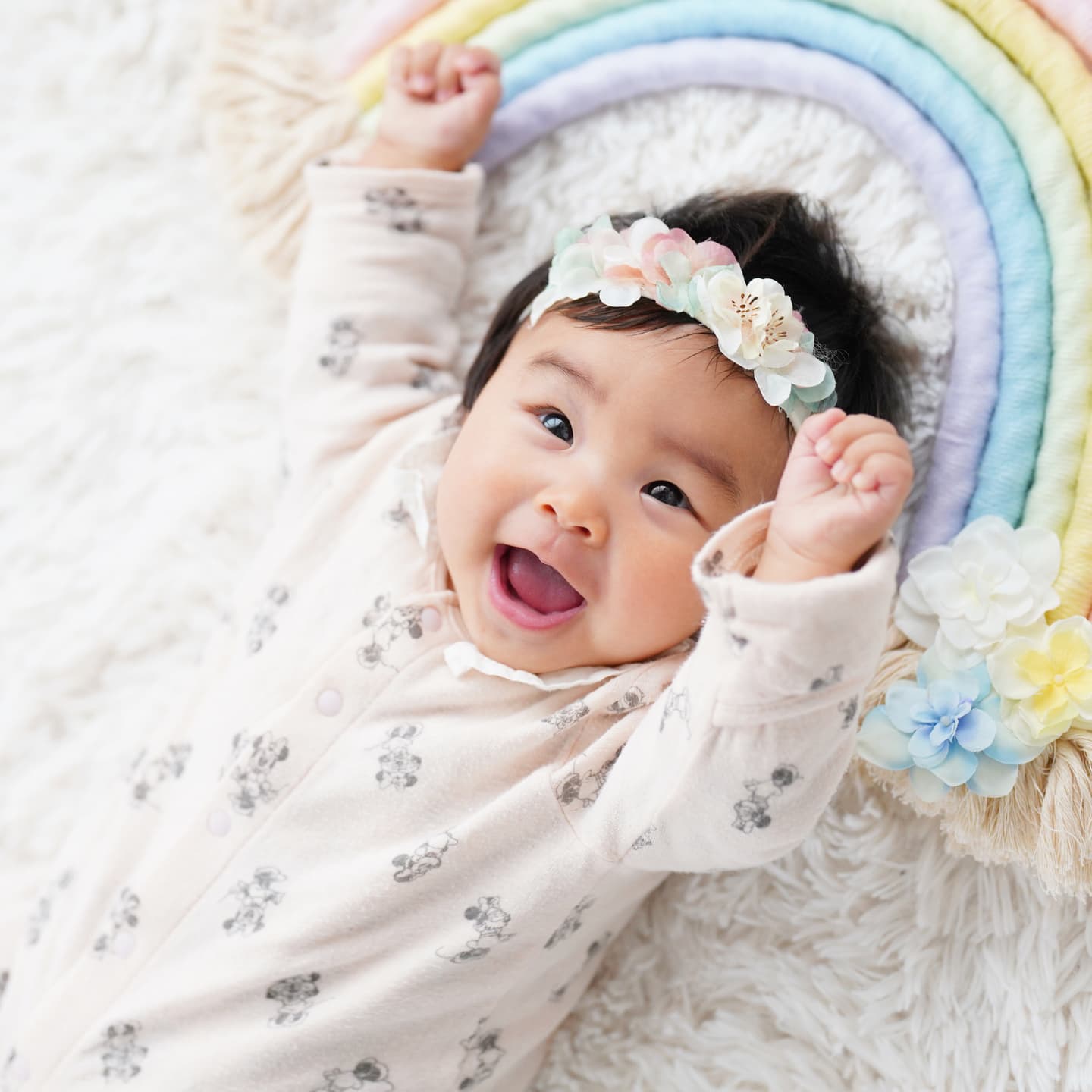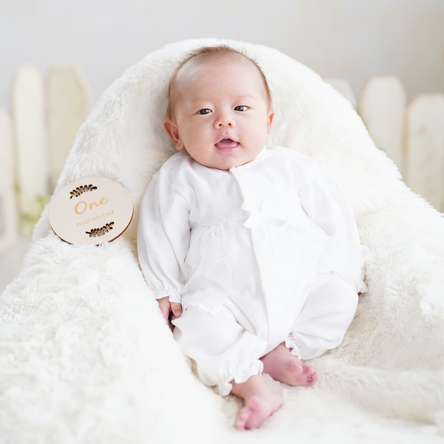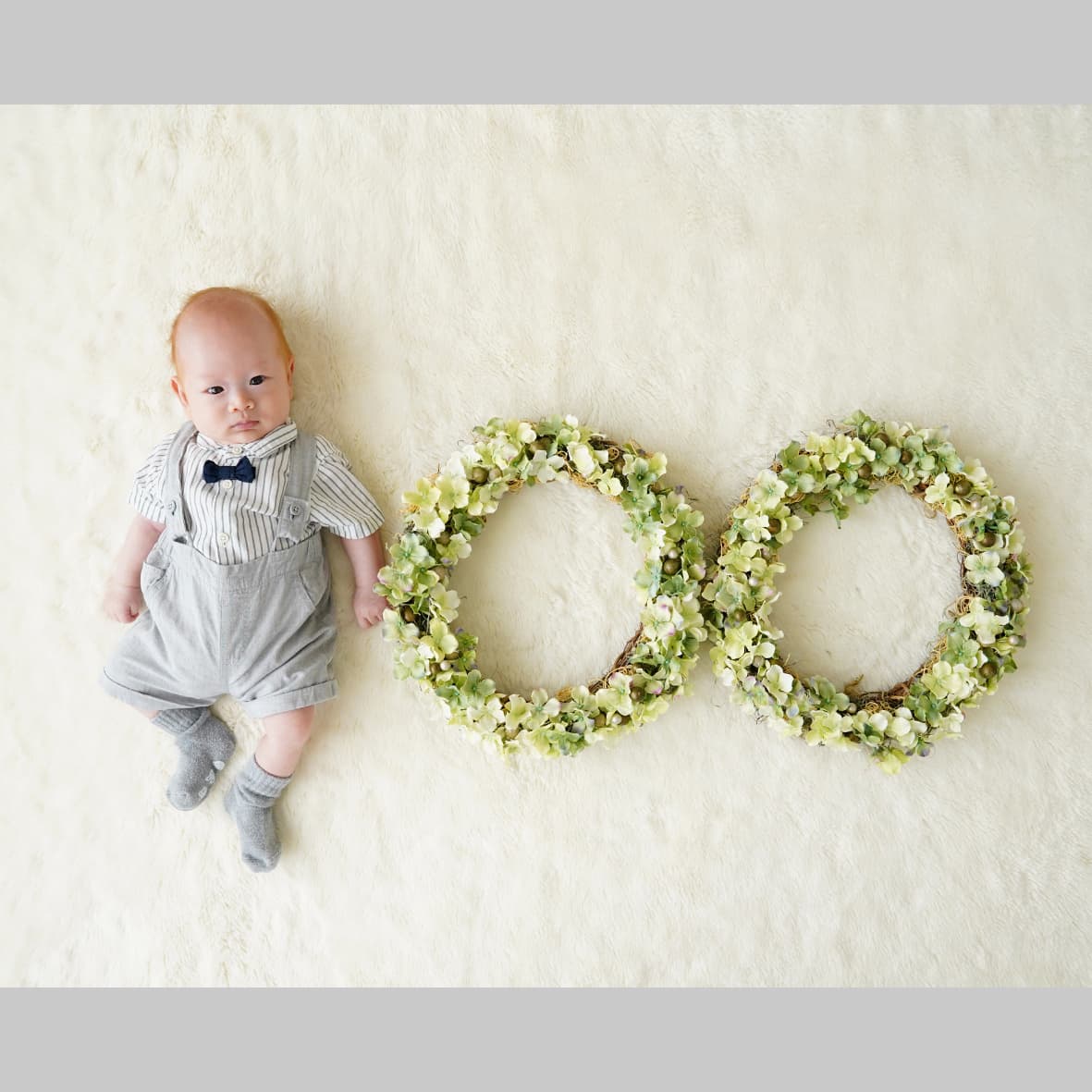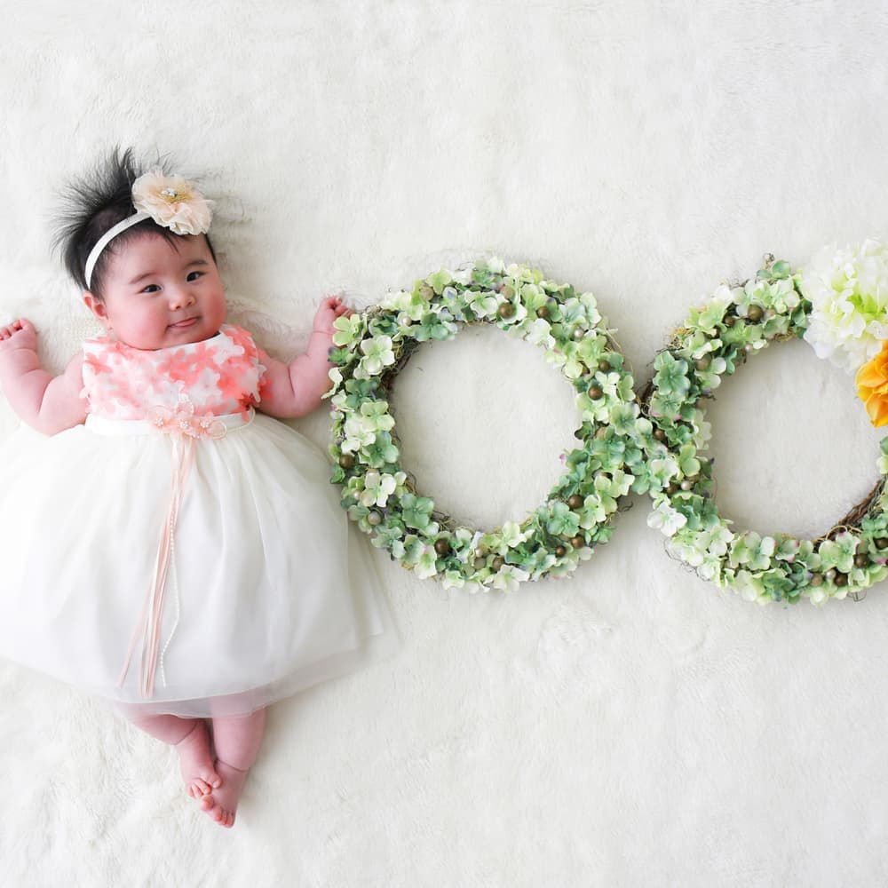 当店では赤ちゃんの安全のため、生後1か月(健診が終わってから)以上の月齢で撮影しております。首がしっかりしてきて起きている時間も長くなる、2か月~3か月頃もおすすめです