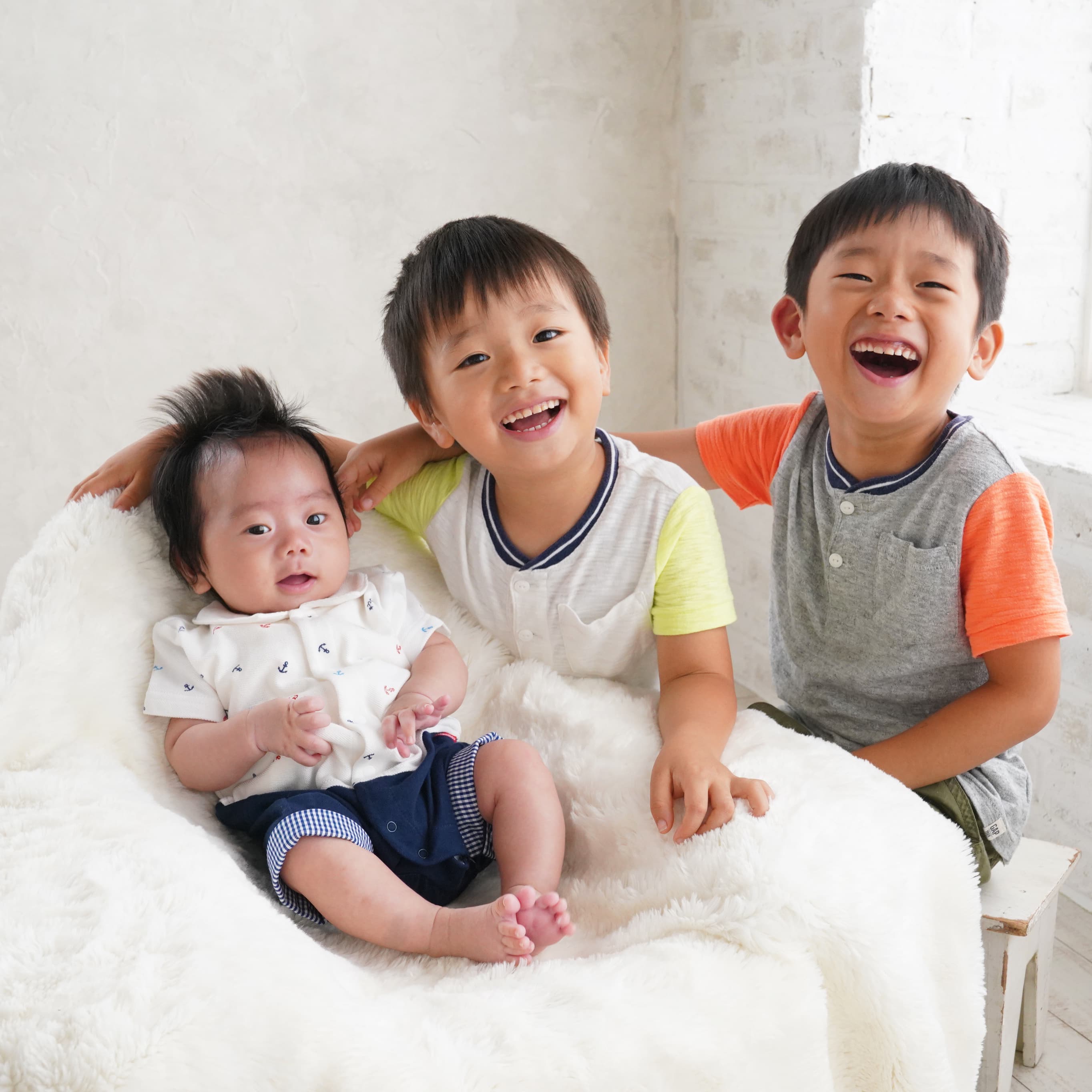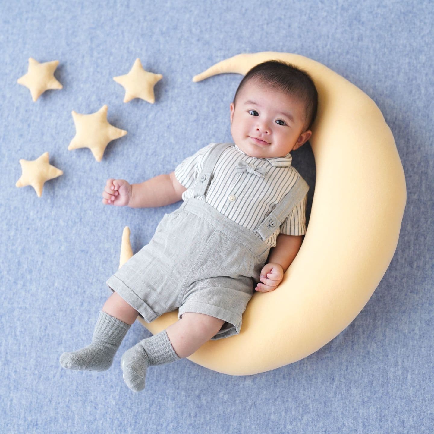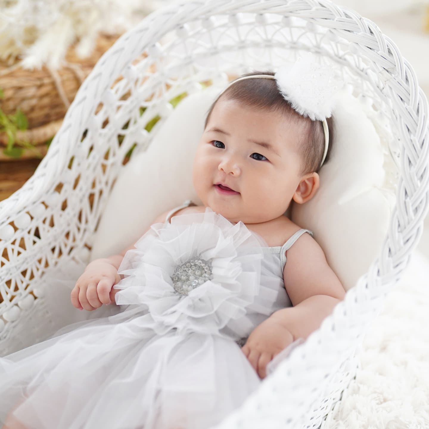 当店では赤ちゃんの安全のため、生後1か月(健診が終わってから)以上の月齢で撮影しております。首がしっかりしてきて起きている時間も長くなる、2か月~3か月頃もおすすめです