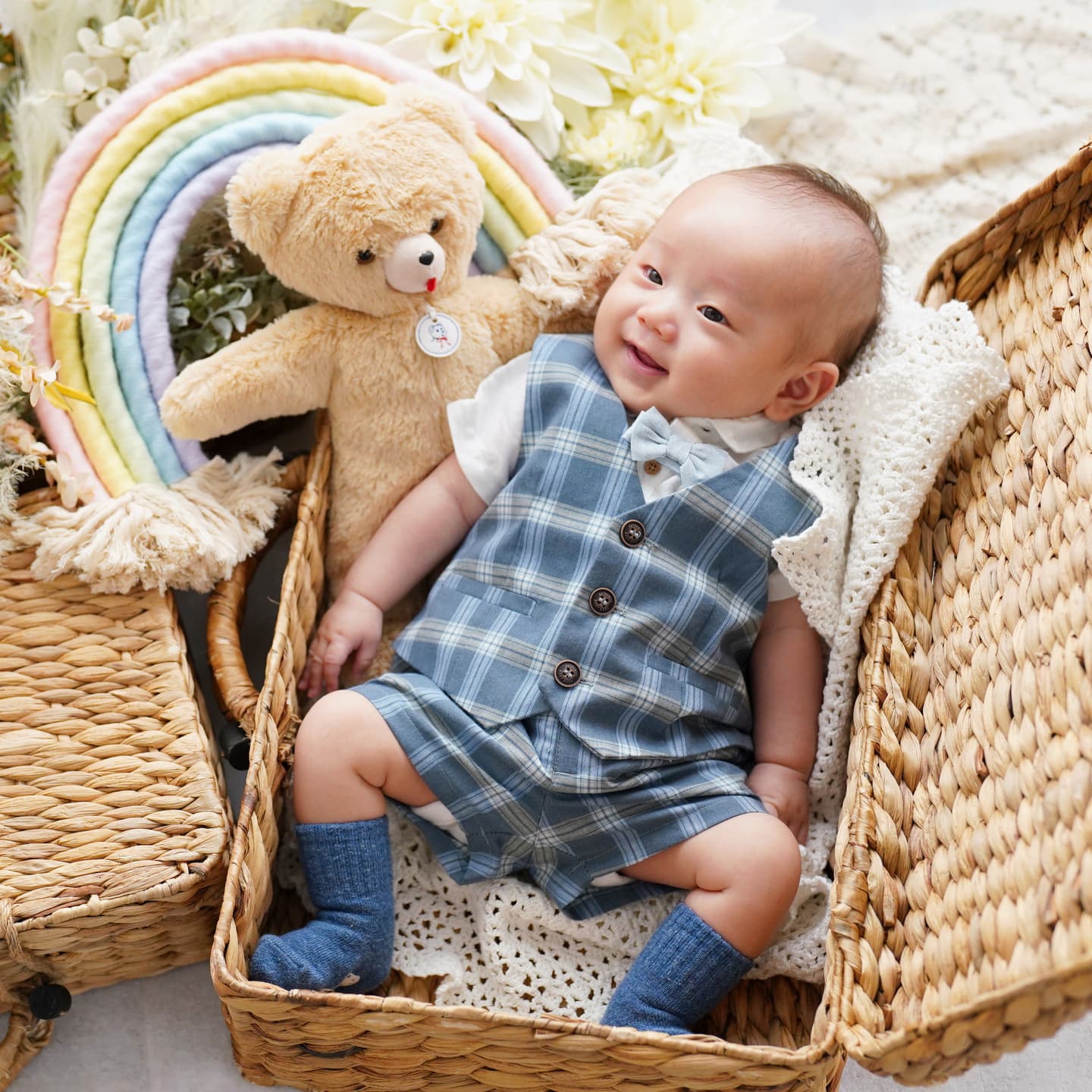 主役の赤ちゃん2着のうちの、どちらかで撮影(2着両方では撮影できません)